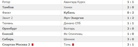 Среди других матчей стоит отметить победу "Спартака-2" над "Томью" со счетом 2:1. Красно-белые очень давно не побеждали, команда была в кризисе, но томичи этим не воспользовались. "Ротор" сыграл вничью 1:1 с "Авангардом", а "Факел" дома уступил "Кубани", которая наконец-то начала стабильно набирать очки.