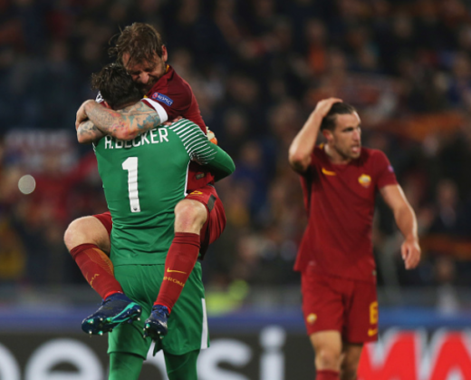 Франческо Тотти наконец перебрался на трибуны, та же участь, казалось, всё ближе подбирается к второму сенатору «Ромы». Де Росси давно не напоминает себя прежнего, он отправил мяч в свои ворота в Каталонии (как, кстати, и Манолас), но сегодняшние голевая передача и гол с пенальти всё перечеркнули. Потрясающая игра ветерана, который своей карьерой точно заслужил такого успеха с родной командой.