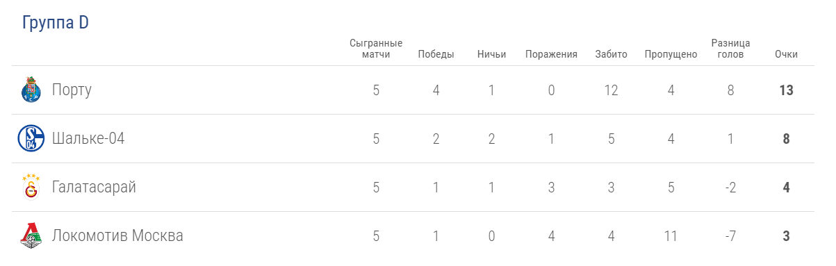 «Локомотив» еще месяц назад считался явным аутсайдером, а теперь имеет все шансы на евровесну. Для осуществления данной задачи команде Юрия Семина необходимо обыгрывать «Шальке» и надеяться на потерю очков «Галатасарая» в матче против «Порту». Португальцы при любых раскладах останутся на первом месте, а турки опережают москвичей по разнице мячей в личных встречах.