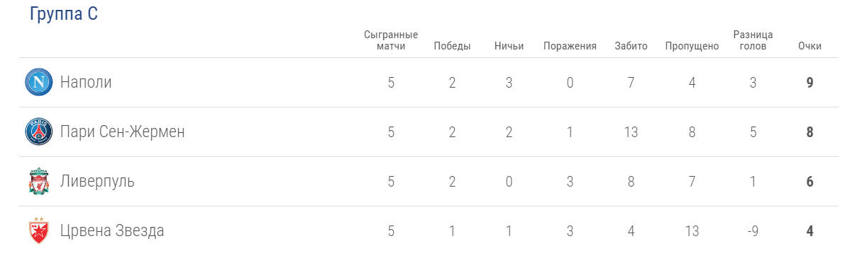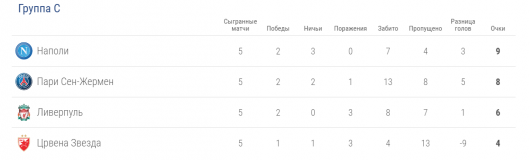 Группа С: «Наполи», «Пари Сен-Жермен», «Ливерпуль», «Црвена Звезда».
