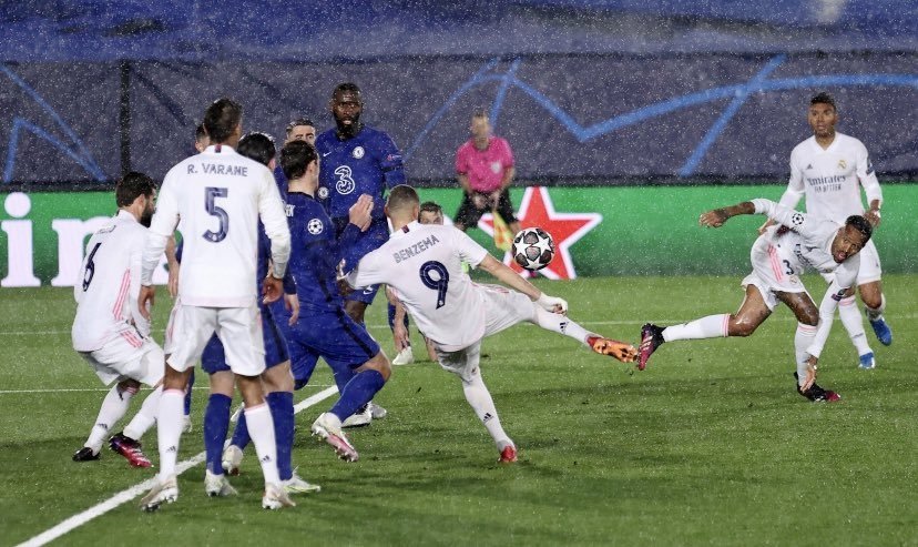 У «Челси» ещё было несколько классных подходов, во время которых лондонцы выходили к чужой штрафной 3 в 2, но гости ошибались в принятии решений. «Реала» же на поле видно не было вовсе, что не помешало испанцам отыграться, когда к этому даже не было никаких предпосылок. Бензема после стандарта, находясь к воротам спиной, придумал гениальный трюк, пробив через себя с разворотом. Выполнить такой элемент было крайне сложно, но ещё интереснее, как до этого додумался француз. Гол получился просто гениальным.