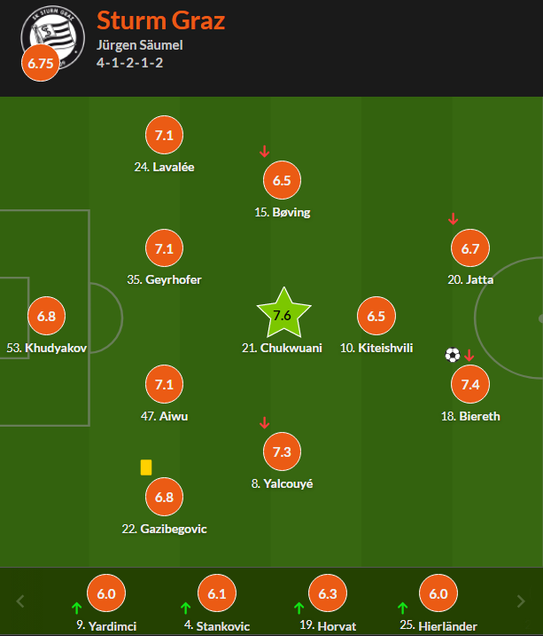 И если в чемпионате Австрии у «Штурма» полёт, как говорится, нормальный (после 14 тура 32 очка и первое место с отрывом в 5 очков), то в Лиге чемпионов придётся потрудиться для того, чтобы попасть в топ-24 (за 3 тура до конца отставание составляет 3 очка).