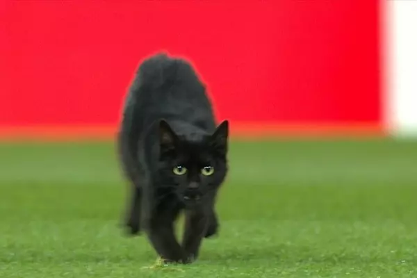 В 25-м туре английской премьер-лиги на матче "Эвертон" - "Вулверхэмптон" (1:3) случился забавный эпизод: игра была приостановлена из-за появления на газоне чёрного кота