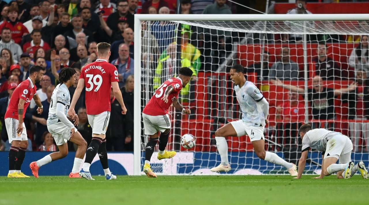Встреча 3 тура Английской премьер-лиги между "Манчестер Юнайтед" и "Ливерпулем" завершилась победой манкунианцев со счетом 2:1. На 16 минуте счет открыл Джейдон Санчо, на 53 минуте преимущество "МЮ" удвоил Маркус Рэшфорд, на 81 минуте Мохаммед Салах отыграл один гол, установив окончательный результат. 37-летний форвард "красных дьяволов" Криштиану Роналду начал матч на скамейке запасных и вышел на замену на 86 минуте игры. Эта победа стала первой для "МЮ" в сезоне после двух поражений и позволила подняться с последнего места на 14-е (3 очка), "Ливерпуль" с 2 очками занимает 16-ю строчку таблицы.