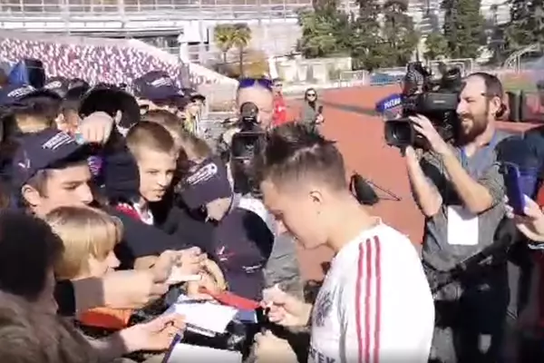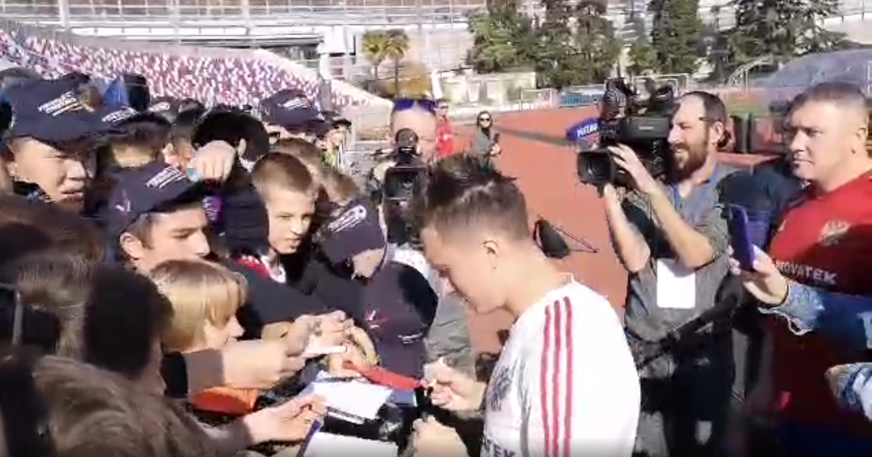 Головин раздал автографы во время тренировки сборной России 11 ноября 2019 12:12 Полузащитник сборной России Александр Головин во время тренировочного занятия национальной команды раздал автографы, передает корреспондент Rusfootball.info Виктор Драгунов. Фото: Rusfootball.info Сегодня, 11 ноября, коллектив Станислава Черчесова проводит первую тренировку в Сочи в рамках подготовительного цикла к матчам отбора Евро-2020. Напомним, что сборная России, досрочно завоевавшая путевку на Евро-2020, 16 ноября сыграет в Санкт-Петербурге с Бельгией, а 19 ноября завершит отборочный цикл гостевой игрой с Сан-Марино.В текущем сезоне Головин, выступающий за "Монако", забил 3 гола и отдал 2 результативные передачи в 11 матчах в чемпионате Франции. Подписывайтесь на новости футбола от Rusfootball.info в Telegram, Яндекс.Новостях и Гугл.Новостях. Все главные и интересные новости тут Гугл.Новости Яндекс.Новости Телеграм Александр Головин Сборная России Чемпионат Европы Опубликовал: Нашли ошибку в статье? Напечатать | 0 0