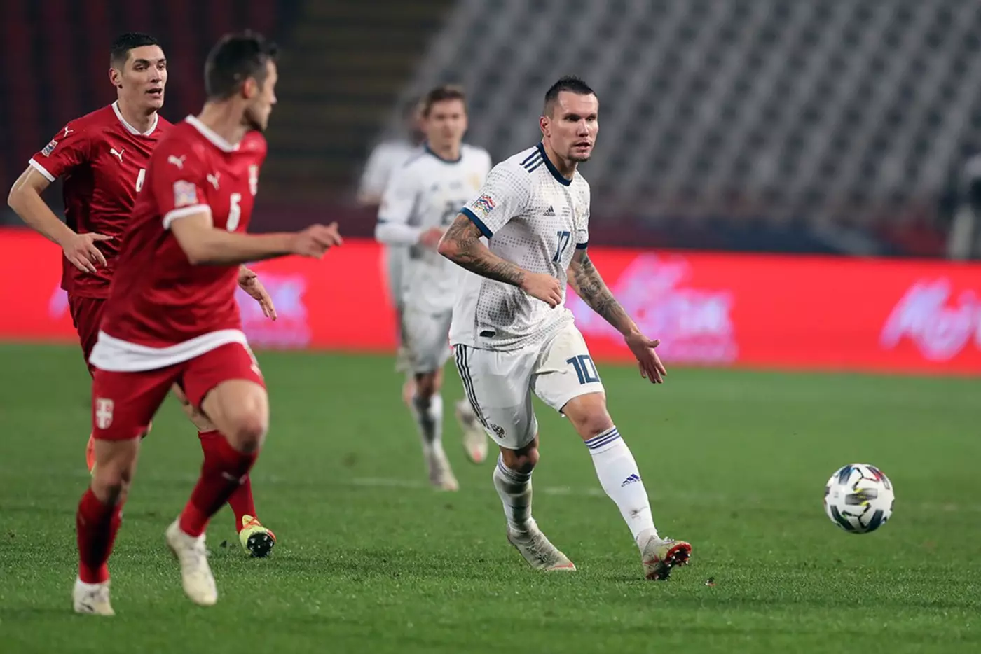 В матче 6 тура группы 3 дивизиона B Лиги наций Сербия - Россия (0:5) на позиции центрального нападающего в составе нашей команды вышел форвард "Сочи" Антон Заболотный. За проведенные на поле 72 минуты он нанес 7 ударов по воротам, 4 из них в створ, но так и не смог реализовать ни одного момента.