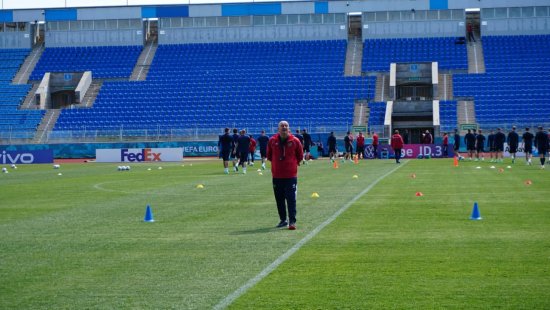 Свою подготовку сборная России, которая в первом туре проиграла Бельгии (0:3), проводит на стадионе "Петровский" в Санкт-Петербурге.