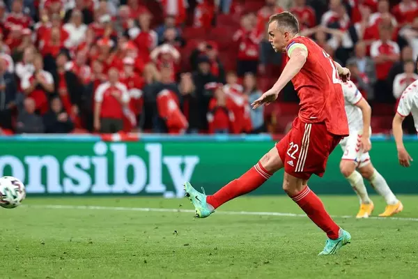 Капитан сборной России Артем Дзюба стал автором единственного гола национальной команды в проигранном матче чемпионата Европы-2020 с Данией (1:4).