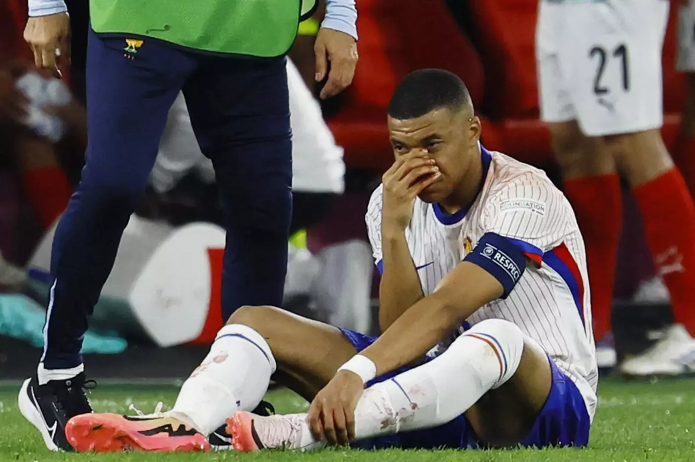 Сборная Франции стартовала на Евро с непростой победы над Австрией (1:0). Но успех трёхцветных затмила травма Килиана Мбаппе. Самый звёздный игрок сборной Франции получил травму, столкнувшись с защитником австрийской сборной в концовке. Столкновение получилось настолько серьёзным, что Мбаппе разбил нос. Теперь нападающий, по всей видимости, пропустит оставшиеся матчи группового этапа. А в плей-офф Килиану придётся играть в защитной маске (черепашки ниндзя?).