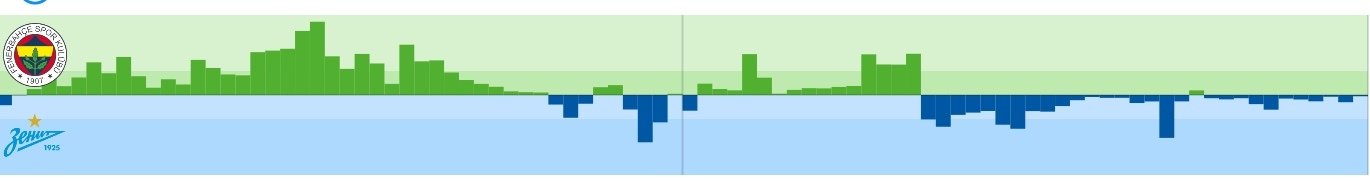 Причина таких условий в первые полчаса игры – схема 4-3-3 у «Фенербахче». Она дает больше условий для контроля мяча и перегрузов зон, но требует много перемещений. «Фенербахче» по кадровым причинам (на ЛЕ не заявлены 3 основных игрока) и из-за проблем с формой не способен давать необходимый объем таких перемещений на протяжении всего матча, именно поэтому они выдали неплохие отрезки - в первые полчаса игры и сразу после перерыва (15-17 минут). 74% всей активности на трети поля Зенита и 12 из 14 ударов (не включены только 2 дальних удара из-за пределов штрафной) пришлись именно на эти отрезки активности.