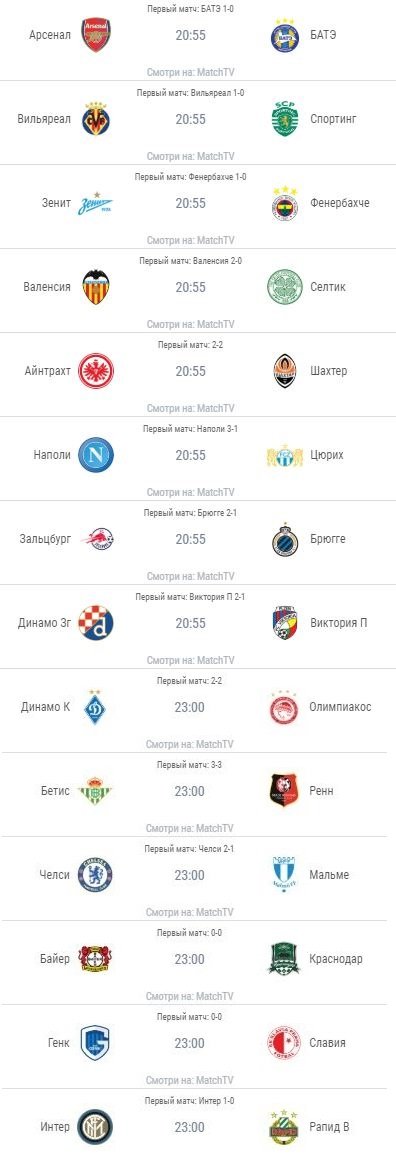 «Айнтрахт» - «Шахтёр» и «Динамо» Киев – «Олимпиакос»