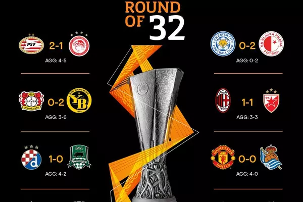 "Лестер" и "Байер" вылетели, "Манчестер Юнайтед" и "Динамо" Киев прошли дальше и другие результаты Лиги Европы