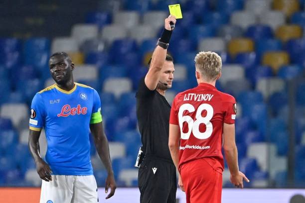 В конце первого тайма главный арбитр Иван Кружляк назначил пенальти в ворота "Наполи". Александр Соболев поборолся в штрафной, Квинси Промес подхватил мяч, развернулся и получил по ногам от Матео Политано. Однако после просмотра VAR судья отменил свое решение.