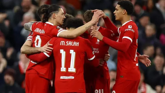 Английский "Ливерпуль" одержал победу над пражской "Спартой" в ответном матче 1/8 финала Лиги Европы со счетом 6:1.