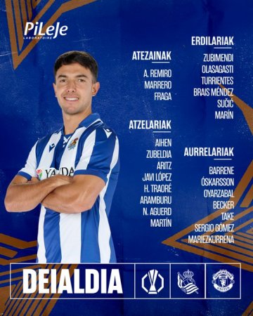 Стала известна заявка "Реала Сосьедад" на игру против "Ман Юнайтед" в 1/8 финала ЛЕ.