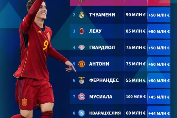 Трансферная стоимость шестерых игроков из списка повысилась на 50 млн евро – лидером рейтинга стал полузащитник "Барселоны" Гави, его оценивают в 90 млн.