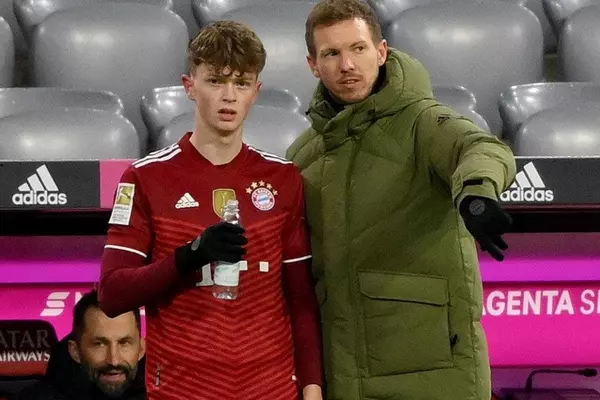 Тем самым футболист установил сразу два рекорда, став самым юным выходившим на поле игроком не только в составе своего клуба, но и во всей Бундеслиге. Ранее самым молодым задействованным в официальных матчах футболистом "Баварии" был атакующий хавбек Джамаль Мусиала, 20 июня 2020 года вышедший на поле в возрасте 17 лет, 3 месяцев и 25 дней. В чемпионате Германии таким был центрфорвард дортмундской "Боруссии" Юссуфа Мукоко, который 14 августа 2021 года дебютировал в возрасте 16 лет, 8 месяцев и 25 дней.