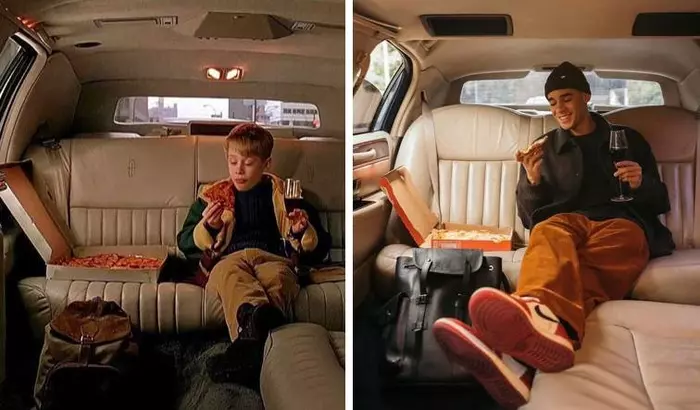21-летний футболист решил воссоздать эпизод, в котором главный герой Кевин МакКалистер ест пиццу и пьет колу на заднем сидении лимузина.