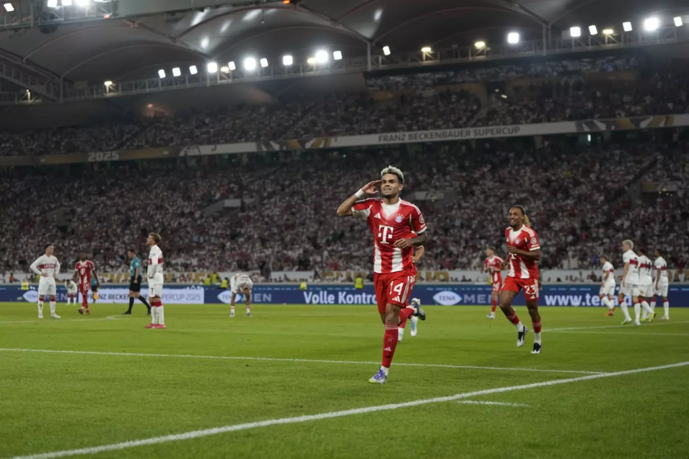 Сегодня, 16 августа, состоялся матч между "Штутгартом" и "Баварией" за Суперкубок Германии. Игра прошла на стадионе "Штутгарт Арена" и завершилась победой мюнхенской команды со счетом 2:1. Забитыми мячами отметились нападающий Гарри Кейн и вингер Луис Диас, перешедший этим летом из "Ливерпуля".