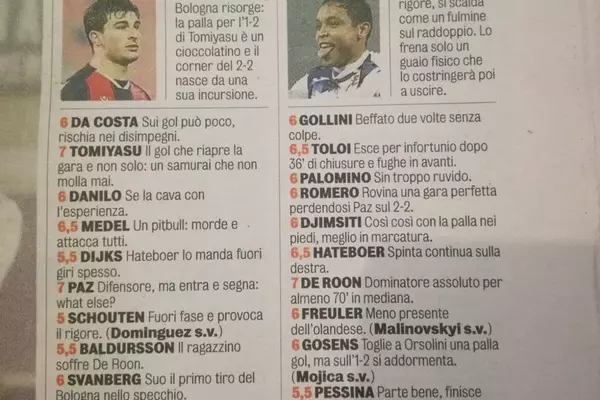 За матч 14-го тура Серии А с "Болоньей" (2:2) итальянское издание поставило россиянину, который вышел на замену сразу после перерыва, оценку 5,0, прокомментировав его игру фразой: "Призрак на поле".