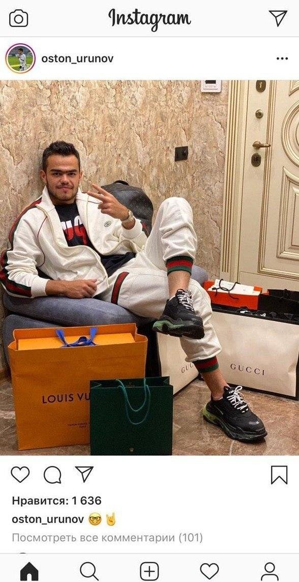 Урунов выложил фото с покупками от Гуччи и Луи Виттон, но вскоре удалил пост