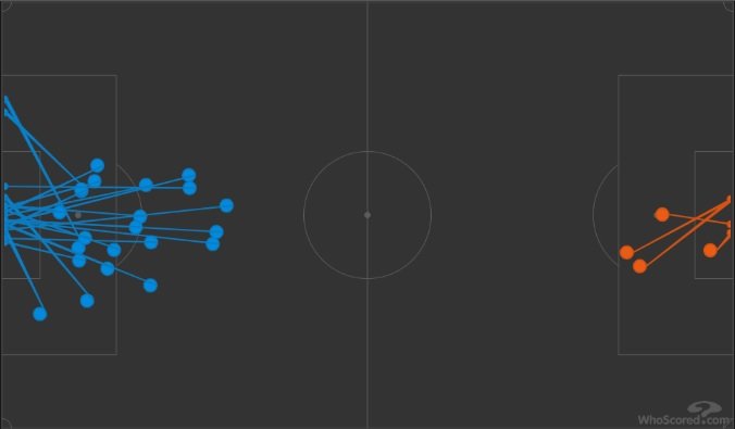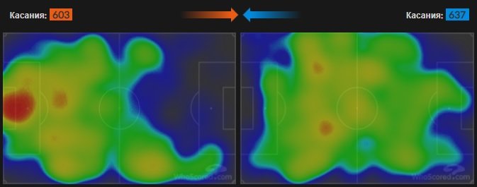 Итоговая статистика по ударам составила 4 (4 в створ) у желто-синих против 22 (7 в створ) у бело-голубых по версии Whoscored – подробную карту ударов вы можете увидеть ниже. Таким образом, «Динамо» «перебило» «Ростов» ровно в 5 с половиной раз – но это никак не помогло московскому клубу набрать очки. Примечательно, что оба гола хозяев поля были организованы с левого фланга, которым в остальное время они атаковали мало (см. тепловые карты команд).