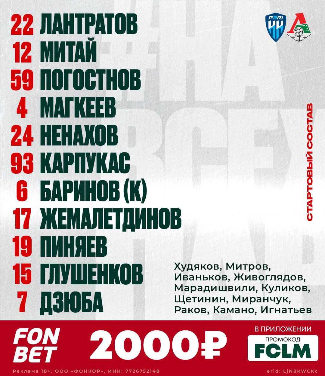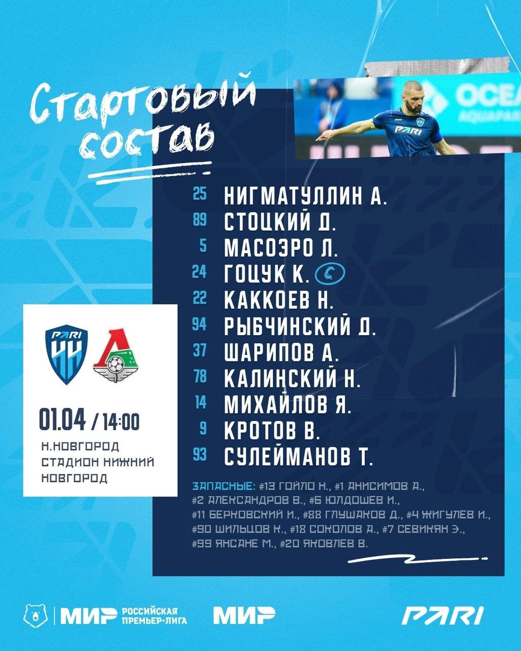 "Пари НН" и "Локомотив" объявили стартовые составы