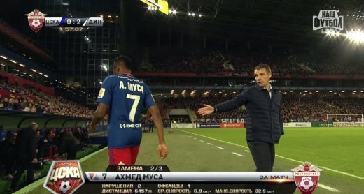 Нападающий московского ЦСКА Ахмед Муса не пожал руку главному тренеру команды Виктору Гончаренко после замены.