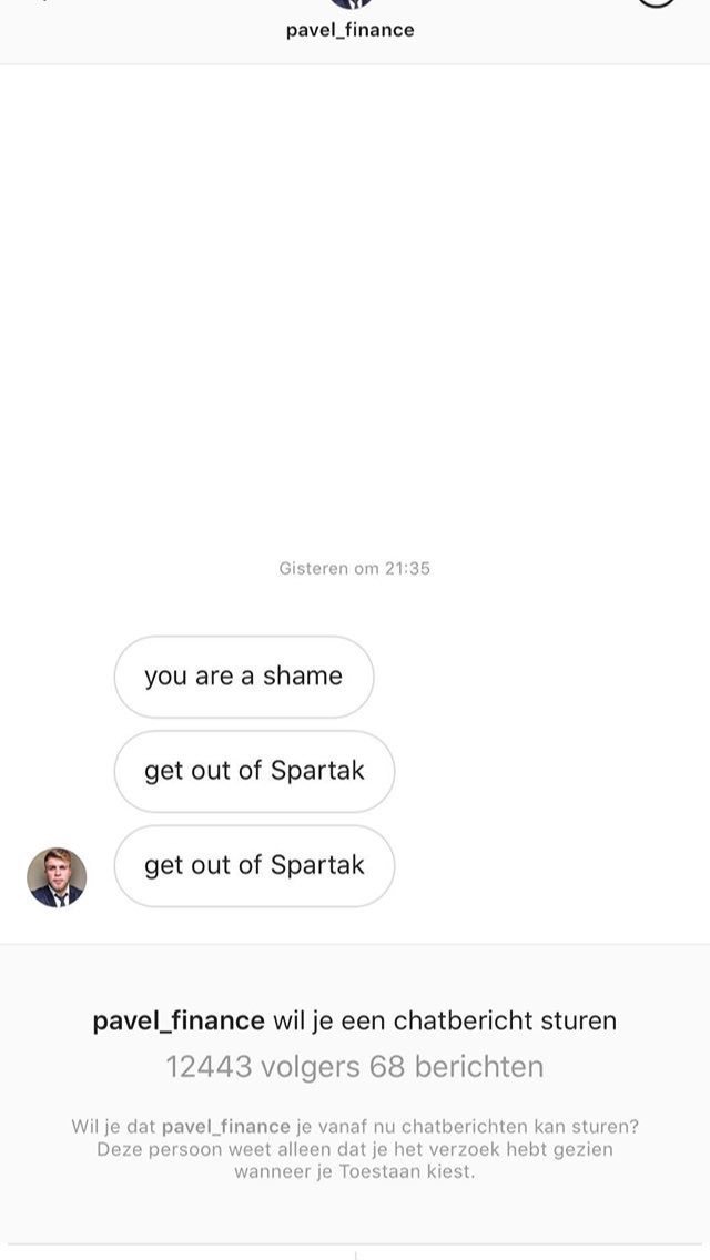 "Ты позорник, убирайся из "Спартака", - гласит сообщение от pavel_finance, который, как и другие написавшие Квинси, был отправлен в чёрный список.