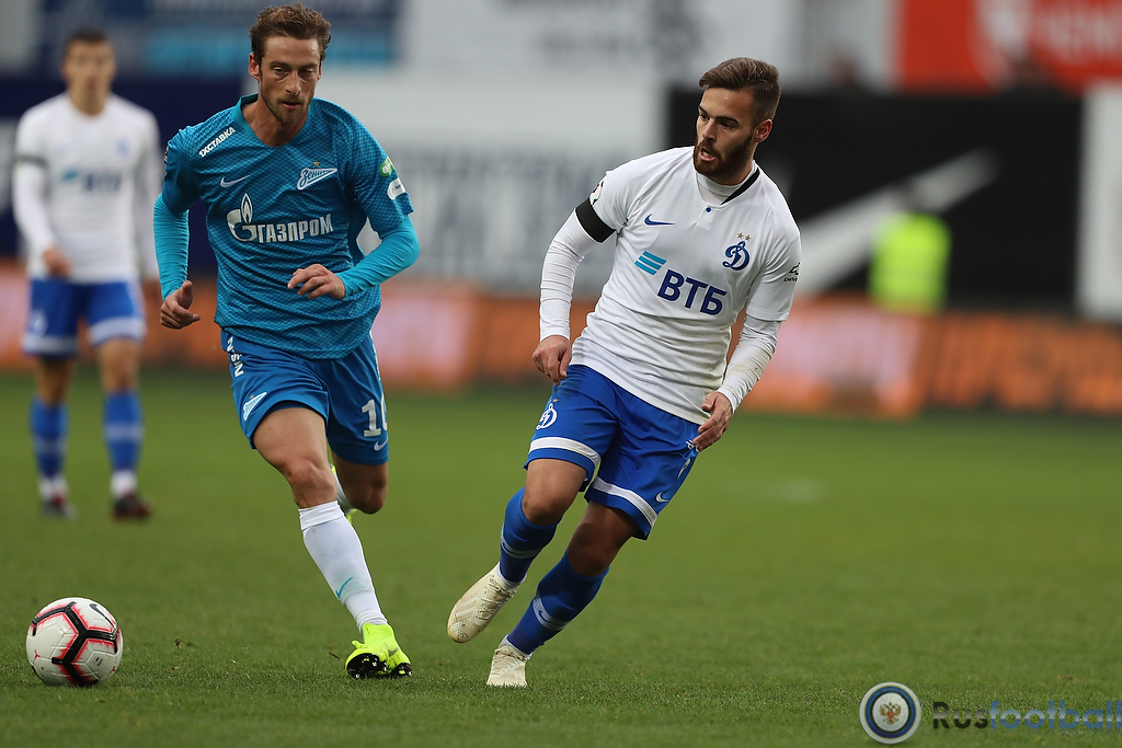 "Динамо – "Зенит": фотоотчет встречи 21 октября 2018 18:12 В матче 11-го тура чемпионата России "Динамо" на своем поле обыграло "Зенит" со счетом 1:0. Представляем Вашему вниманию фототчет встречи: Rusfootball.info Подписывайтесь на новости футбола от Rusfootball.info в Telegram, Яндекс.Новостях и Гугл.Новостях. Все главные и интересные новости тут Гугл.Новости Яндекс.Новости Телеграм Динамо Зенит