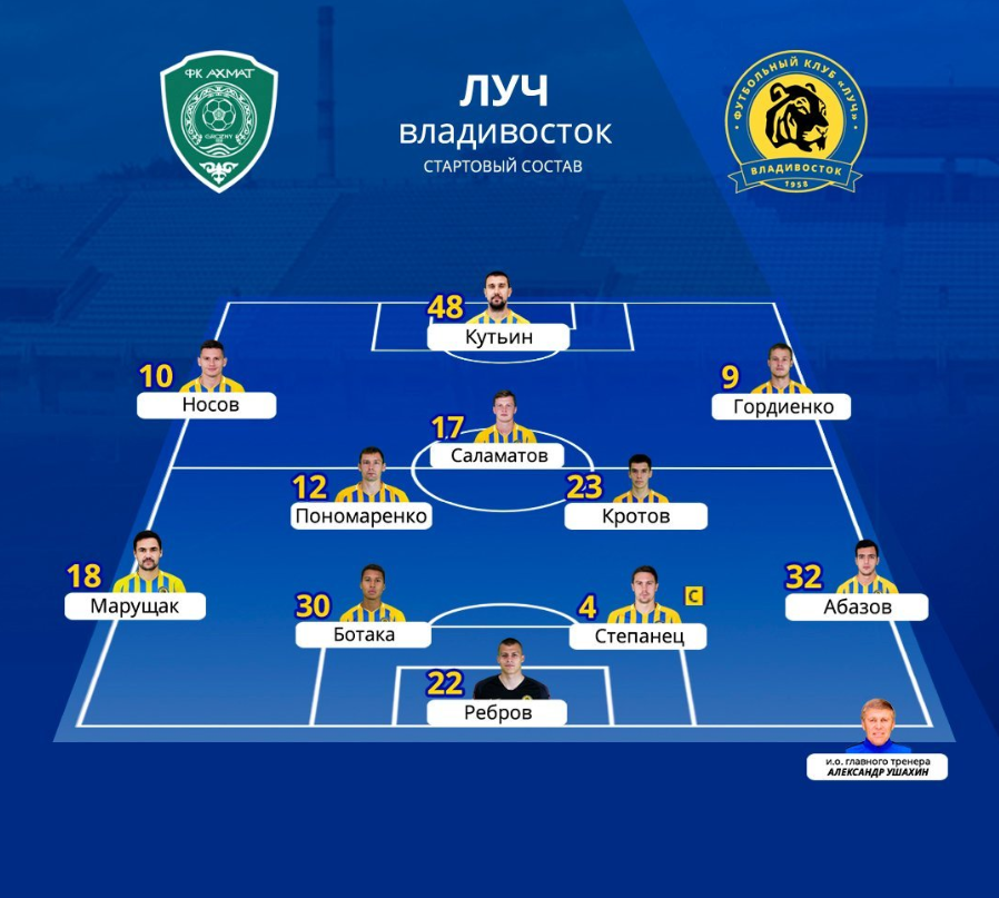 Стартовый состав ФК «Ахмат» на поединок против «Луча» из Владивостока #КубокРоссии pic.twitter.com/5ZEH9VcdtL