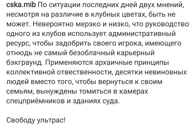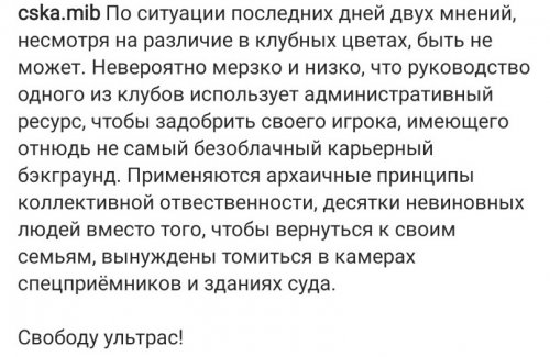 Поддержку спартаковским фанатам выразило объединение ультрас ЦСКА Люди в Чёрном.