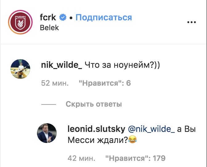Слуцкий ответил подписчику, назвавшему новичка "Рубина" ноунеймом