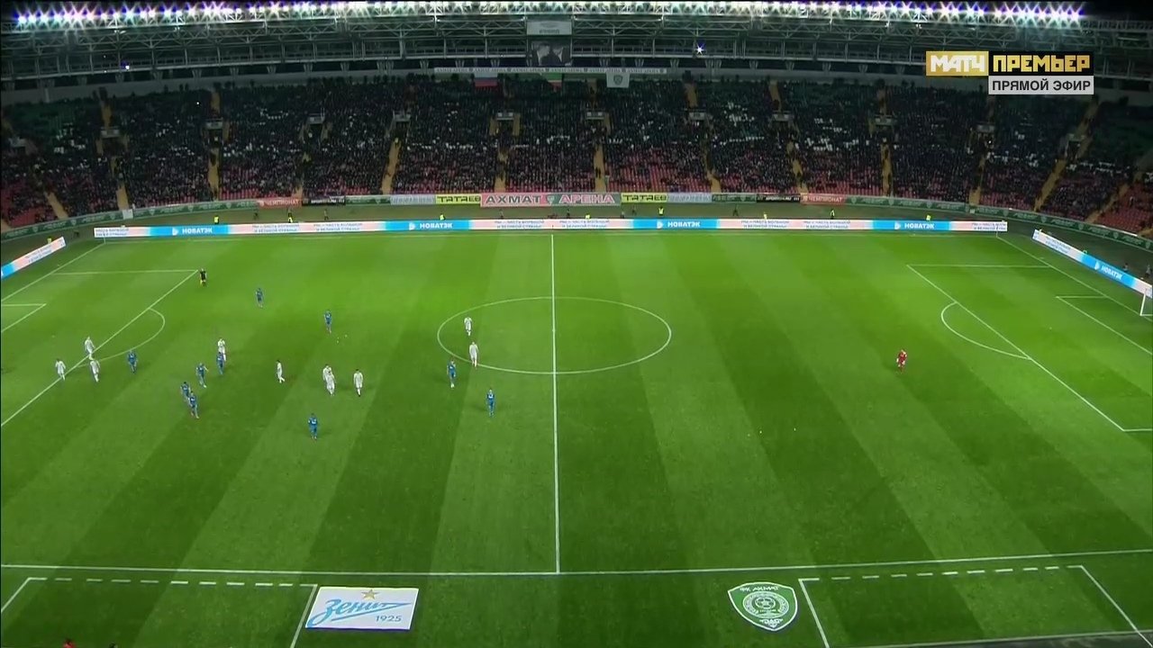 38' Показалось, что гости нашли лазейки на флангах, но "Ахмат" включился и отодвинул игру от своих ворот. Может, и "Зенит" выманивает, нужны петербуржцам свободные зоны, на Дзюбу верхом сегодня не закинешь.