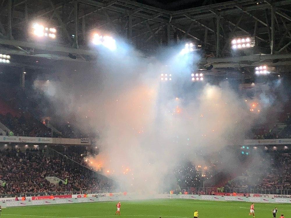 74' Cоболев на сегодня отборолся. Забить снова не получилось, но в отсутствии пользы Александра никак не обвинишь - две голевые в двух матчах. Болельщики тем временем устроили дымовую завесу - может, команда действительно нужно перевести дух. Алексей Волошинов передаёт с места событий.