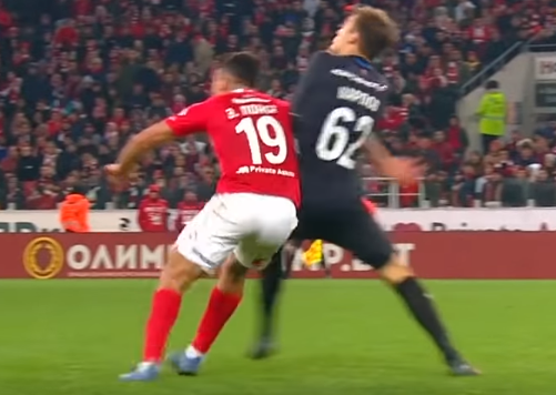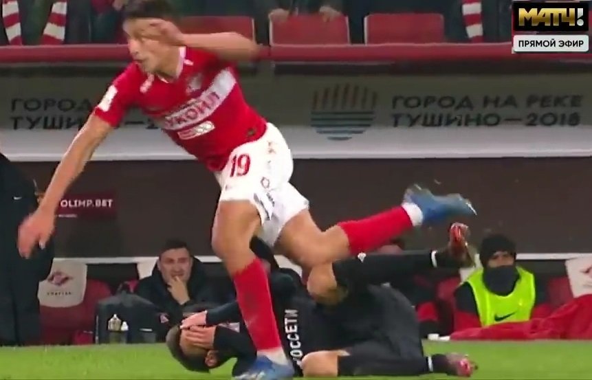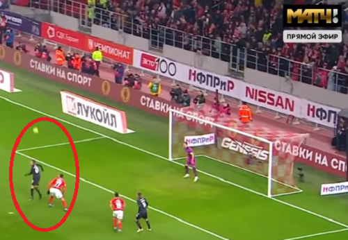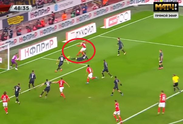 На скринах не так понятно, как в динамике, но видео использовать мы, увы, не можем. А арбитру оно в этой ситуации и не нужно – бесспорная жёлтая.