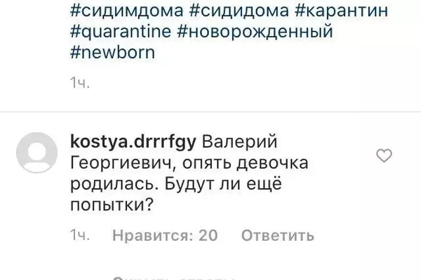 "Валерий Георгиевич, опять девочка родилась. Будут ли еще попытки?" — спросил Карпина один из подписчиков.