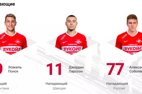 Нападающий "Спартака" Джордан Ларссон теперь будет выступать под 11-м номером, форвард Александр Соболев возьмет "семерку".