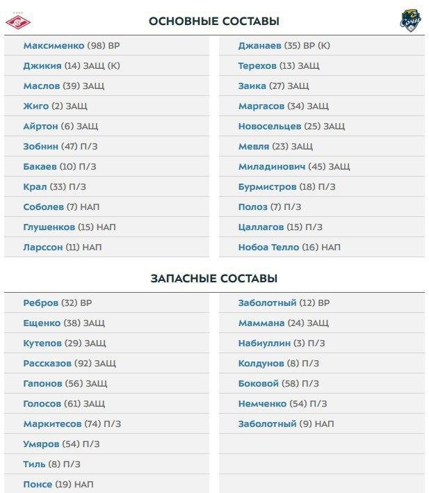 Стартовые составы "Спартака" и "Сочи". Кокорина нет в заявке 9 августа 2020 18:49 Стали известны стартовые составы "Спартака" и "Сочи" на матч 1-го тура чемпионата России. Встреча начнется в 20:00 мск. В заявку красно-белых не попал нападающий Александр Кокорин, подписавший контракт с клубом в начале августа. Подписывайтесь на новости футбола от Rusfootball.info в Telegram, Яндекс.Новостях и Гугл.Новостях. Все главные и интересные новости тут Гугл.Новости Яндекс.Новости Телеграм Спартак Сочи