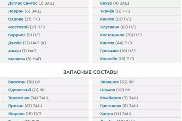 "Зенит" — "Арсенал Тула". Стартовые составы
