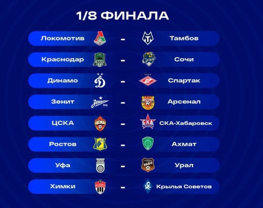 Определились все пары 1/8 финала Кубка России