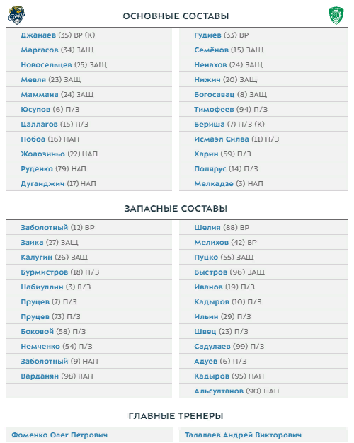 "Сочи" и "Ахмат" назвали составы на матч 17-го тура РПЛ.