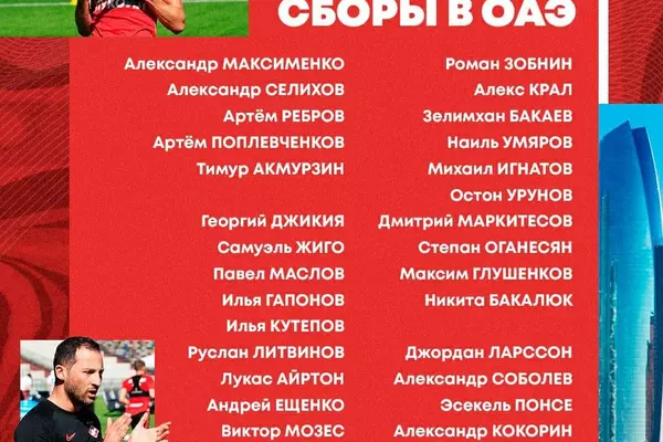 Пресс-служба московского "Спартака" опубликовала список игроков, которые оправятся с командой на первый сбор в ОАЭ.