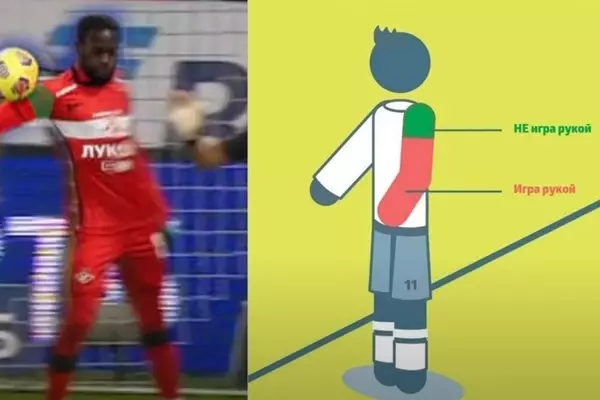 Вот картинка на сайте РФС, объясняющая, что Мозес сыграл рукой и пенальти назначен правильно.