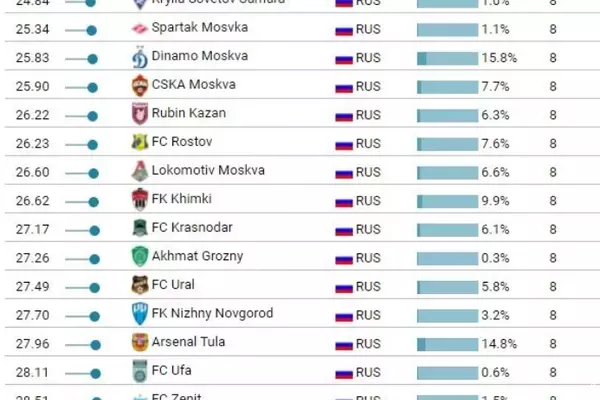 Исследовательский портал CIES Football Observatory опубликовал рейтинг клубов РПЛ текущего сезона по возрасту составов.
