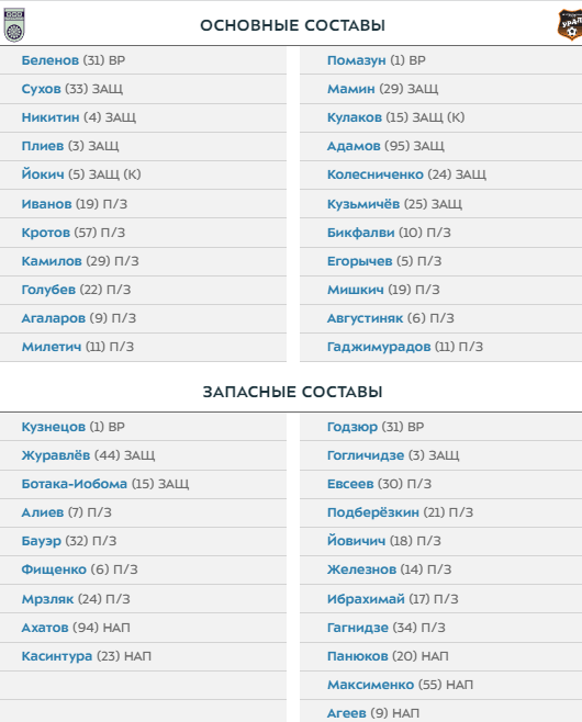 "Уфа" — "Урал". Стартовые составы команд