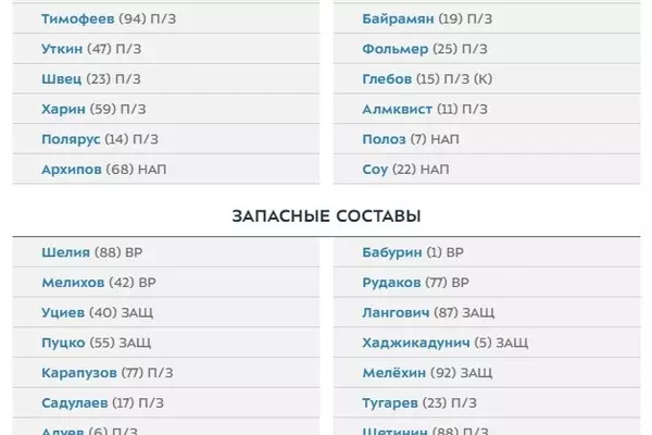 Официальный сайт РПЛ опубликовал составы "Ахмата" и "Ростова" на очную встречу в рамках 16 тура чемпионата России.