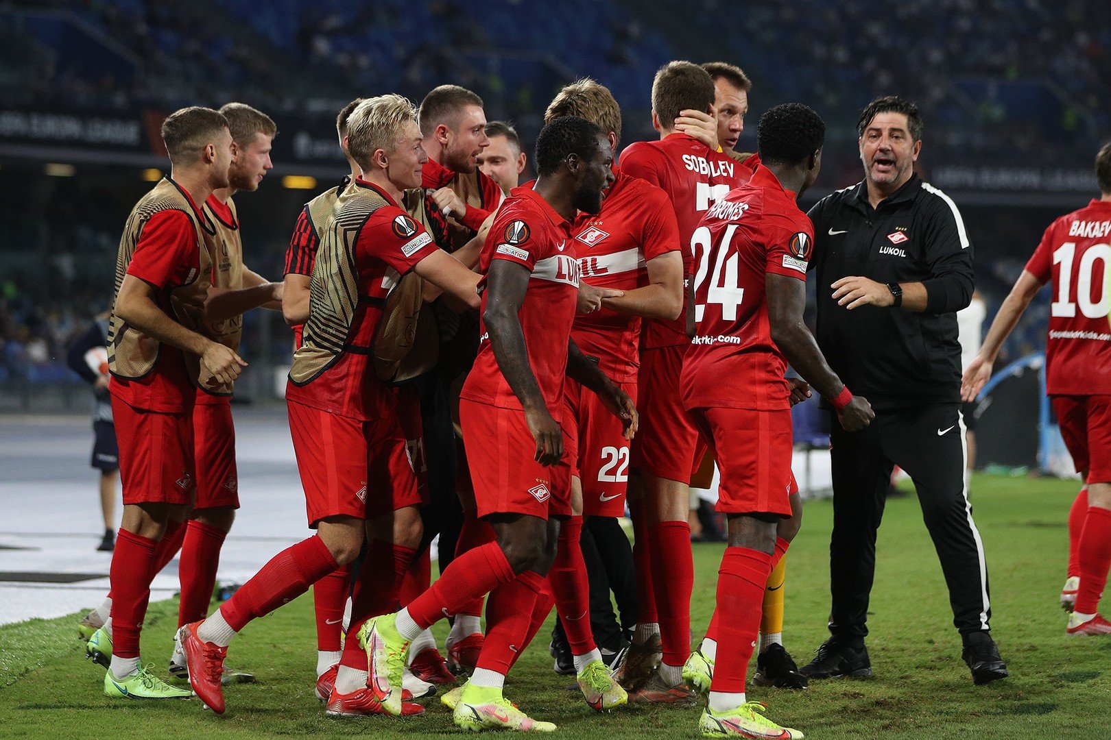 Лига Европы получилась для "Спартака" суперудачной. Выход из группы с "Наполи", "Лестером" и "Легией" с первого места. Обиженный Спалетти, радостный Рассказов. Итальянец отказался жать руку Витории после проигранного матча в Москве.