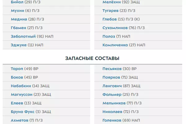 Официальный сайт Российской премьер-лиги опубликовал составы команд на матч 30 тура чемпионата России ЦСКА - "Ростов".