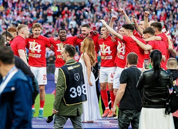 Московский "Спартак" стал обладателем Кубка России сезона-2021/2022. В финале на столичном стадионе "Лужники" команда Паоло Ваноли одержала победу в дерби с "Динамо" со счетом 2:1.